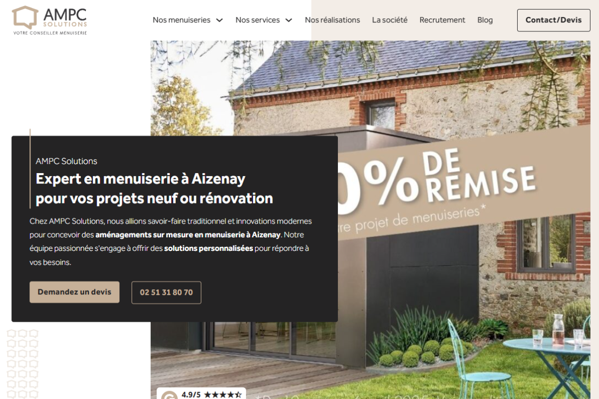 AMPC Solutions a fait appel à l’agence web Enjin pour la création de son site vitrine, son hébergement, sa maintenance, ainsi que pour le webdesign et le SEO. Les enjeux ? Valoriser son savoir-faire artisanal, améliorer sa visibilité locale et offrir à ses clients un site clair et professionnel pour découvrir ses prestations et prendre contact.