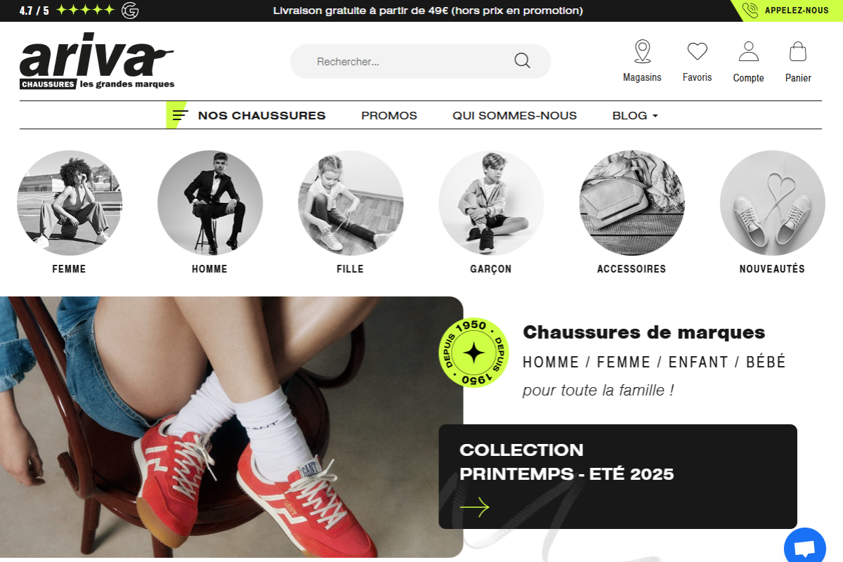 Ariva Chaussures, une enseigne du Groupe Métayer basée dans l’Ouest de la France, est spécialisée dans la vente de chaussures de marque. Depuis trois générations, l’entreprise met un point d’honneur à offrir un service de qualité et à proposer des produits répondant aux attentes de sa clientèle.